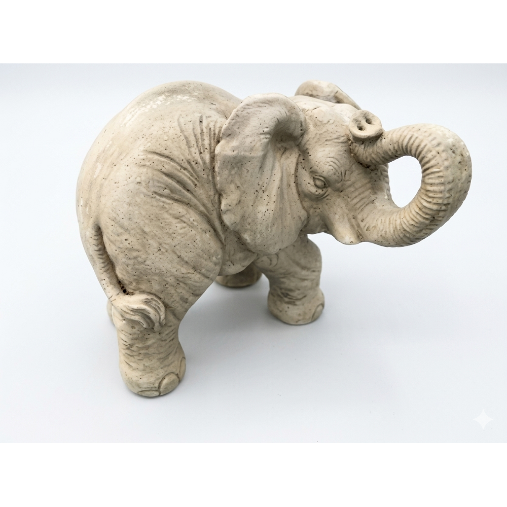Ce sujet d'exception capture toute la puissance de l'éléphant avec une précision anatomique remarquable, des plis de la peau à la texture des oreilles. D’une hauteur de 35 cm, il se distingue par sa posture dynamique, trompe dressée vers le ciel. Sa finition patinée souligne chaque détail sculpté, offrant un rendu brut et authentique. Un gabarit et une silhouette équilibrée qui s'imposent immédiatement dans tout espace de vie ou de jardin.